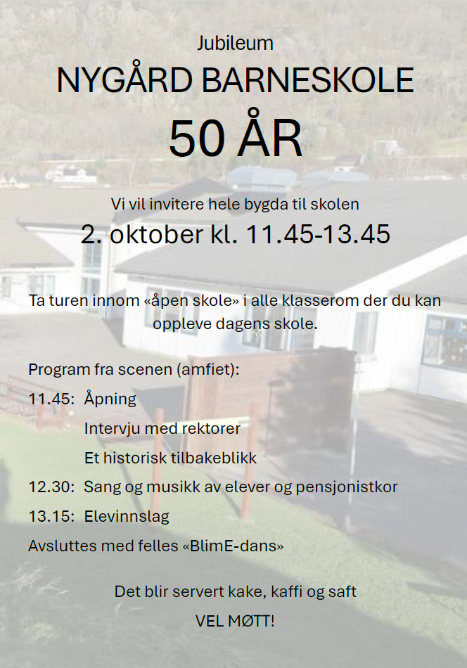 16.mai øvde Nygård barneskole på å gå i 17.mai-tog. Det ble satt opp ulike stasjoner med aktiviteter, blant annet lage spinner og 17.mai-blomst, kaste svamp på blink, sekkeløp, bingo, ringspill og potetløp. FAU stilte med pølser, saft og is. Det var en kjekk dag for store og små.